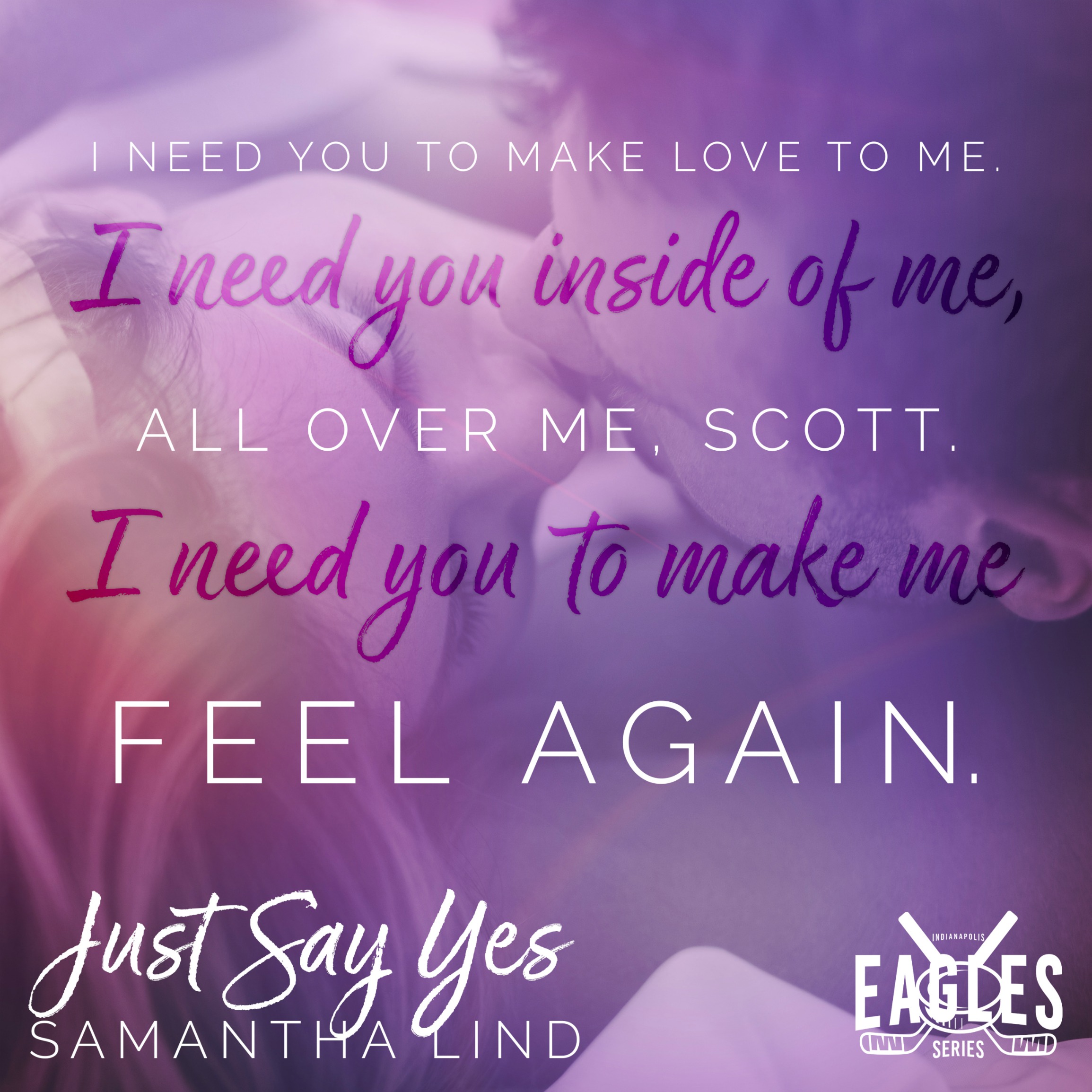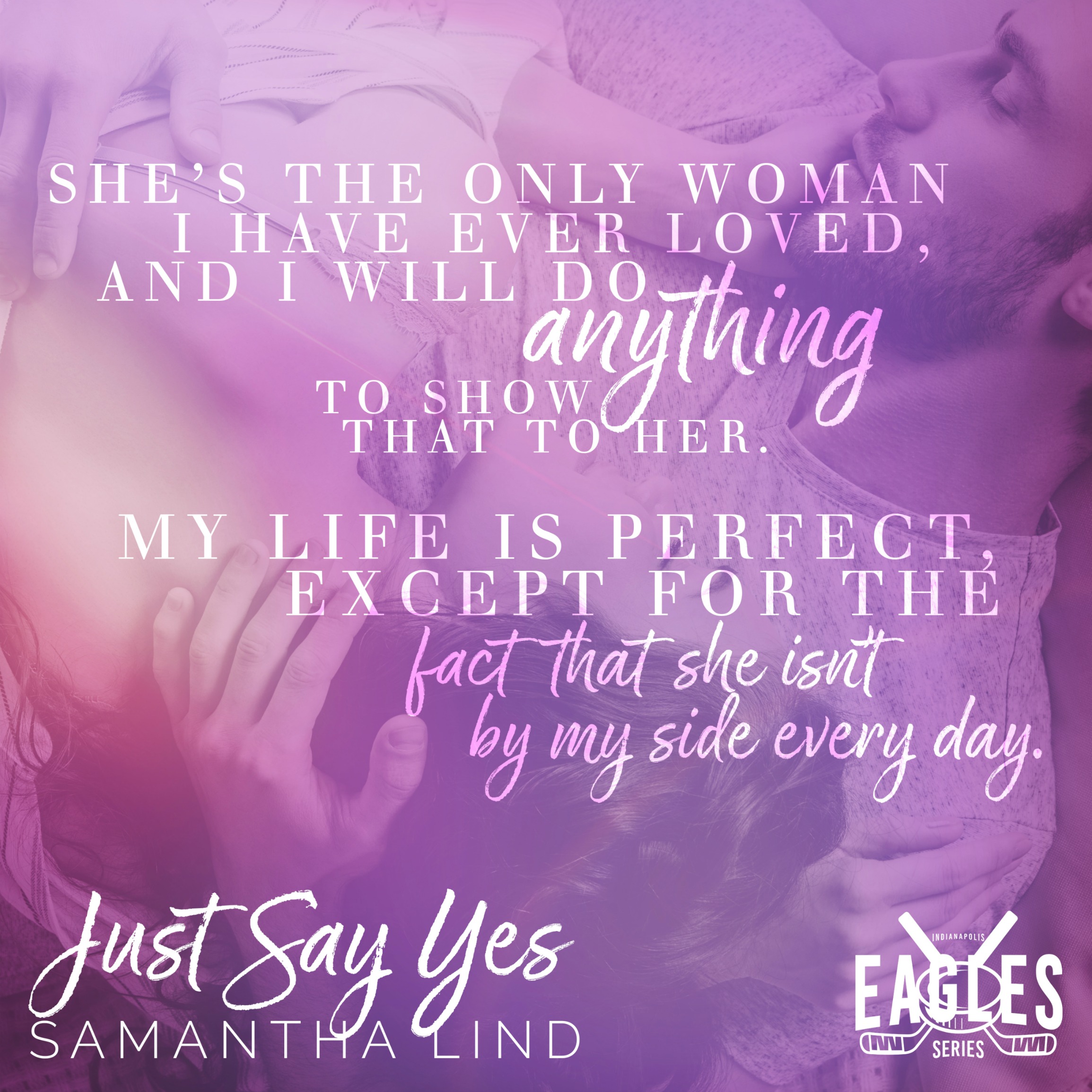 Scott Taylor has the perfect life. He gets to fulfill his dream playing professional hockey, has a loving family, and a tight group of friends. But the one thing missing in his life is a partner to come home to. He knows exactly who he wants to fill that position– the only woman he has ever loved. The one who got away, who constantly consumes his every thought. What it would take to get her to Just Say Yes to a second chance?