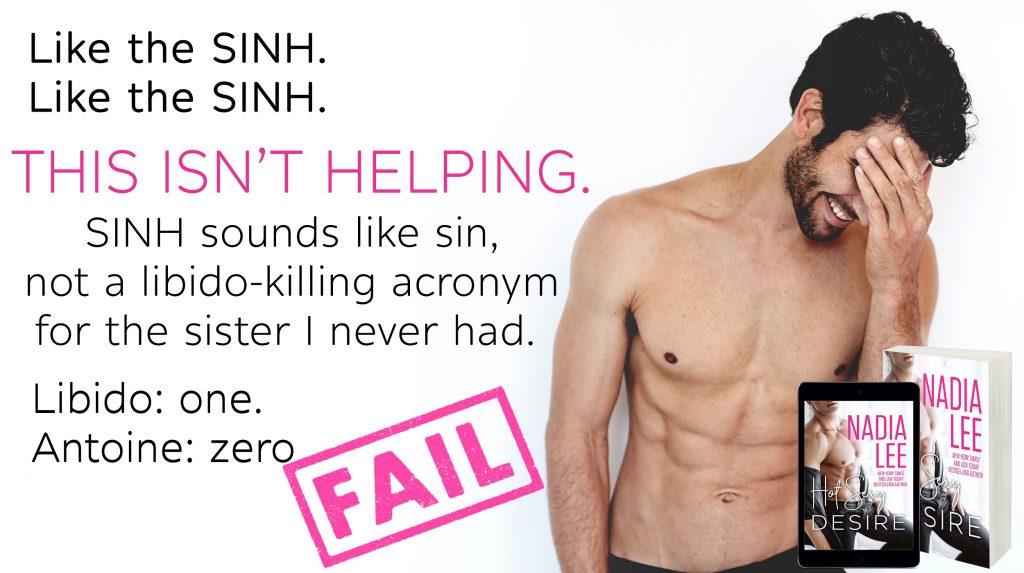 “I’m not doing hotels forever,” I say, doing my best not to bounce around. But Antoine can stay with me to keep me safe! What a brilliant idea. Not that I’m going to say that out loud because if I do, Antoine will do the exact opposite. The man can be positively perverse.